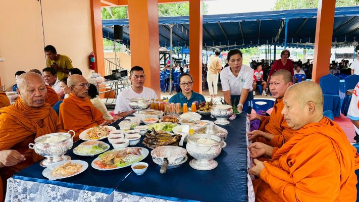 โรงเรียนพลูตาหลวงวิทยาร่วมถวายภัตตาหารเพลในพิธีทำบุญหอพักนักกีฬา