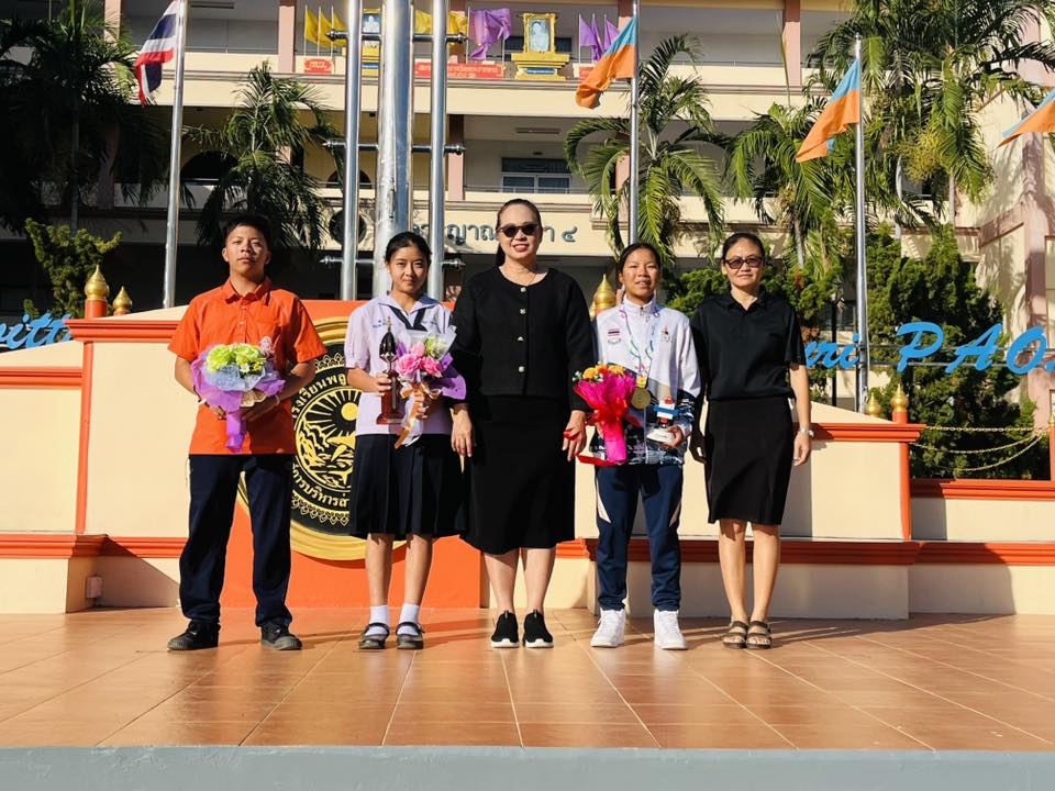 ดร.นฤมล อินทพงษ์ ผู้อำนวยการสถานศึกษา โรงเรียนพลูตาหลวงวิทยา แสดงความยินดี “นักกีฬาเรือใบ” ที่ทำผลงานยอดเยี่ยม ดังรายการต่อไปนี้