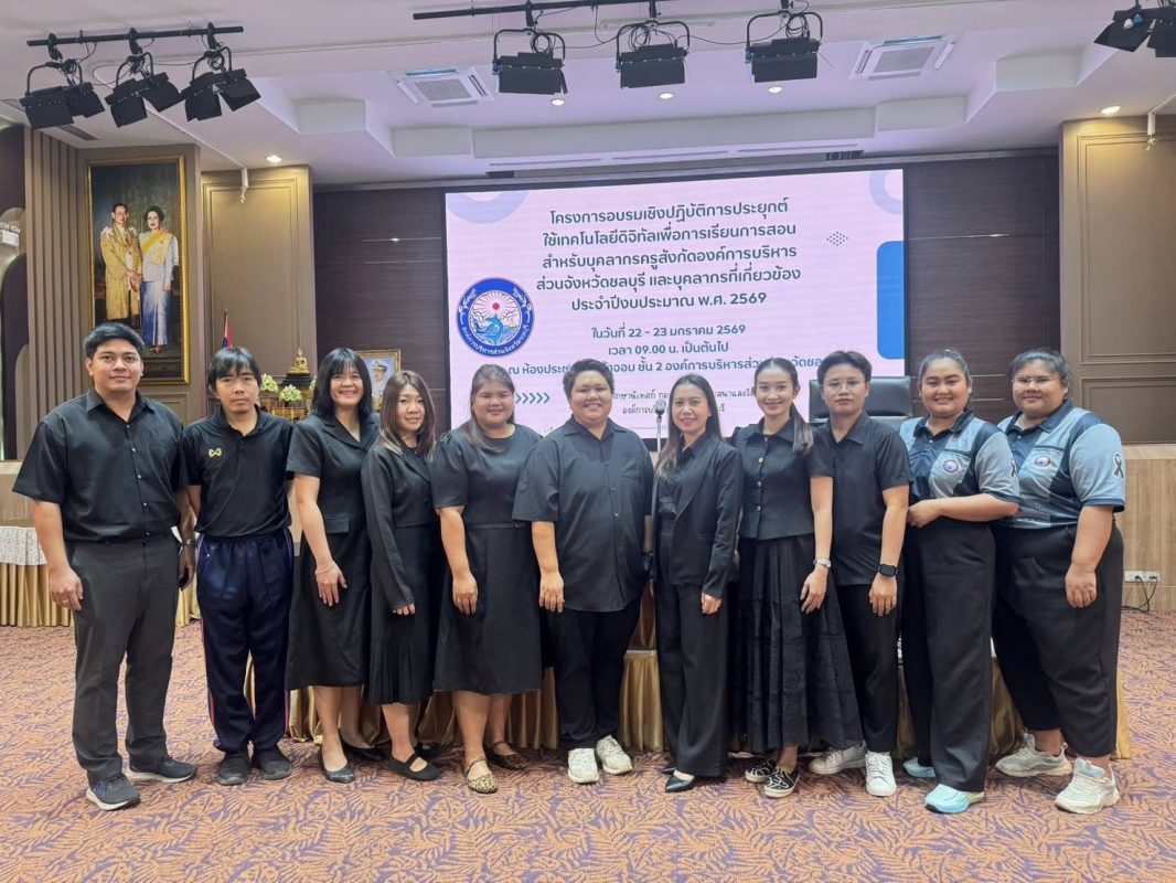 ดร.นฤมล อินทพงษ์ ผู้อำนวยการสถานศึกษาได้มอบหมายให้ คณะครูตัวแทนกลุ่มสาระฯ เข้าร่วมอบรมใน โครงการอบรมเชิงปฏิบัติการการประยุกต์ใช้เทคโนโลยีดิจิทัลเพื่อการเรียนการสอนสำหรับบุคลากรครูสังกัดองค์การบริหารส่วนจังหวัดชลบุรีและบุคลากรที่เกี่ยวข้องประจำปี งบประมาณ พ.ศ 2569 ระหว่างวันที่ 22 – 23 มกราคม 2569 ณ ห้องประชุมแก้วเจ้า องค์การบริหารส่วนจังหวัดชลบุรี