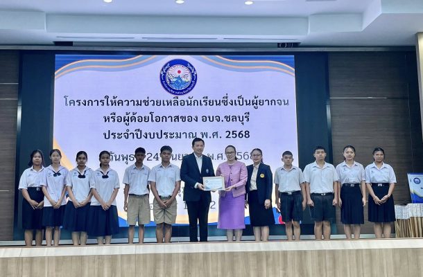 นักเรียนพลูตาหลวงวิทยา รับมอบทุนการศึกษา จาก อบจ.ชลบุรี