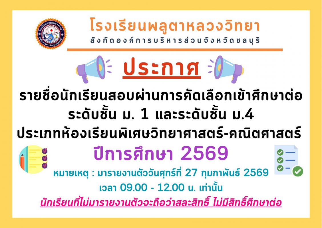 📢ประกาศโรงเรียนพลูตาหลวงวิทยา📢